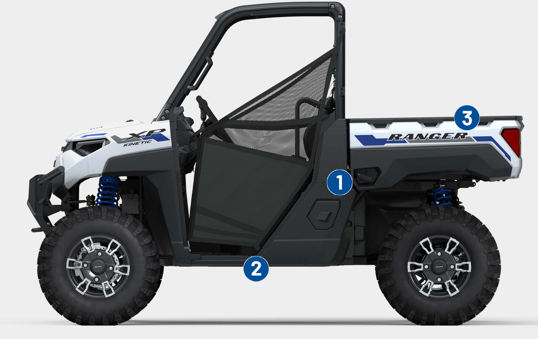 Med en räckvidd på upp till 129 km, bekväm laddning från ett 230V-uttag och mindre planerat underhåll än ett liknandebensindrivet fordon ger RANGER XP Kinetic dig kraften att göra mer.