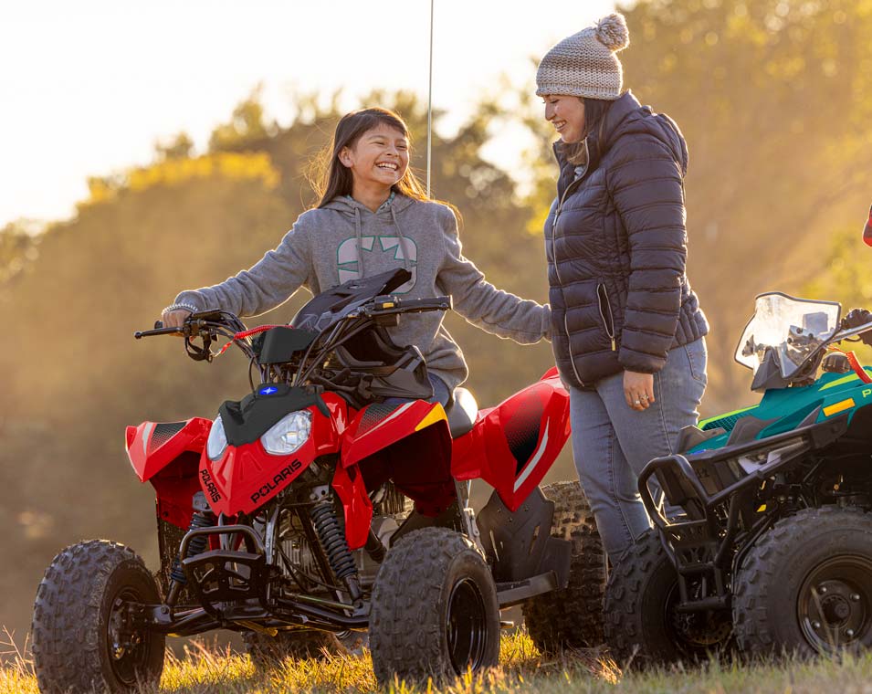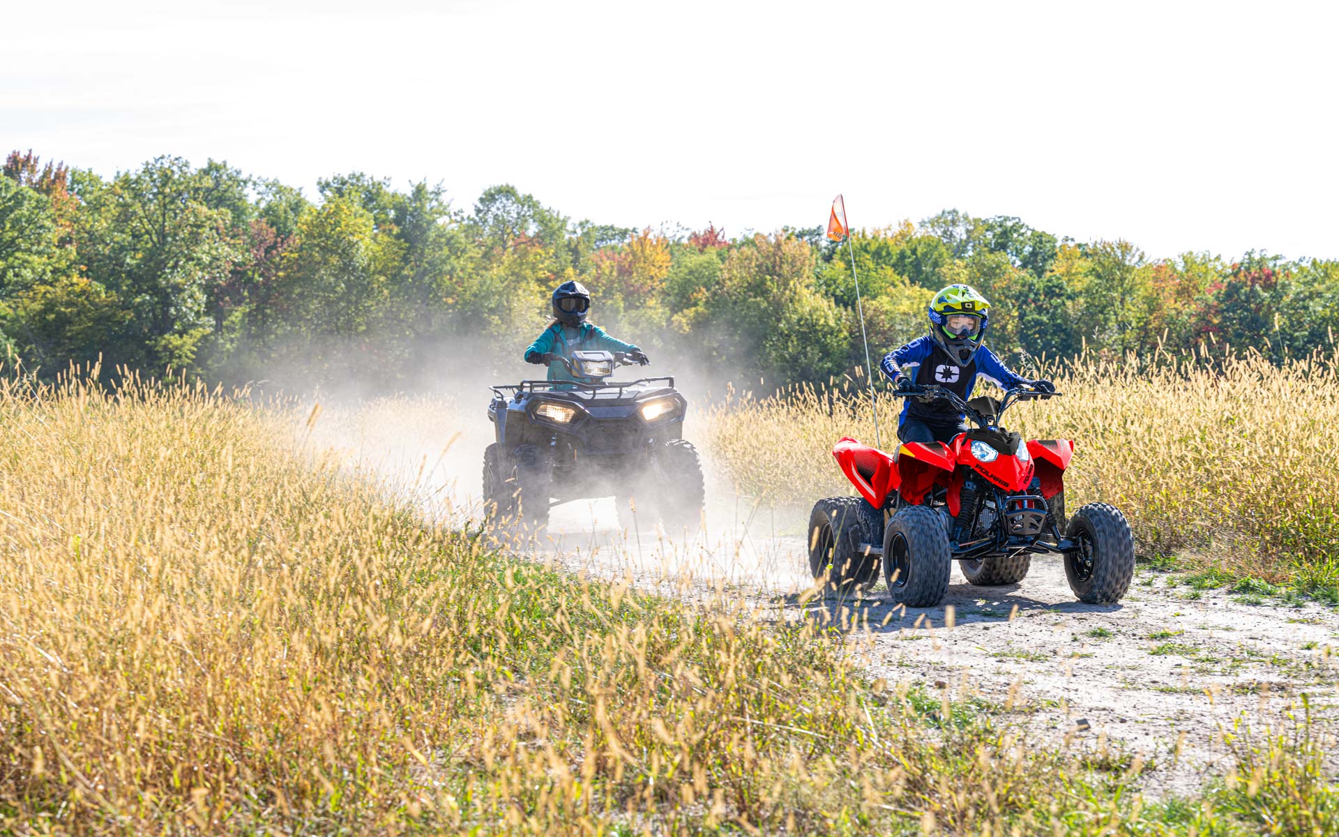 Med en 110cc EFI-motor och tillbehör som gör att yngre förare kan växa med sin ATV. Tillverkad för förare från 10 år och uppåt.